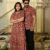 Stylish and coordinated red cotton couple outfit featuring vertical vine hand block prints. The breezy dress with a V-neck and the casual short-sleeve shirt make this a versatile duo for casual outings or festive gatherings.